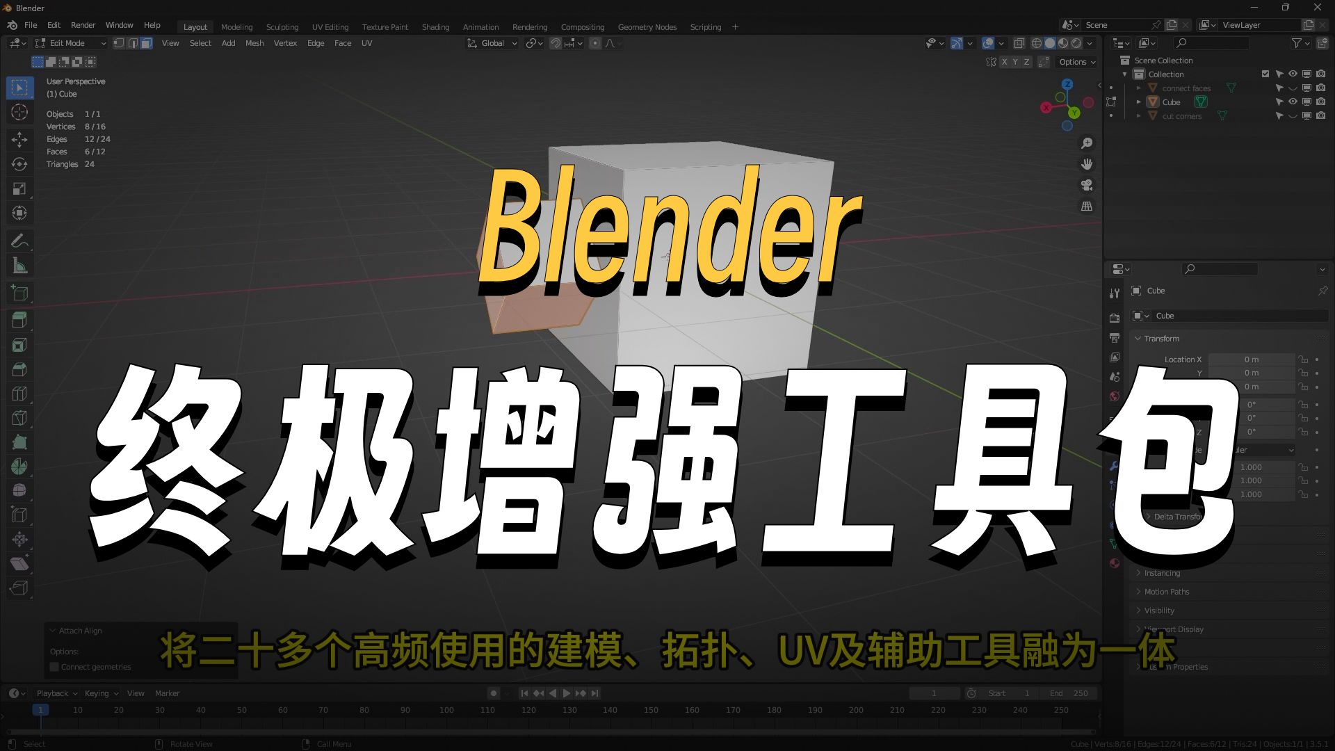 Kushiro Tools是一套专门用于Blender建模的高级工具集合,由Kushiro开发,包含二十多个常用的建模增强插件,如: